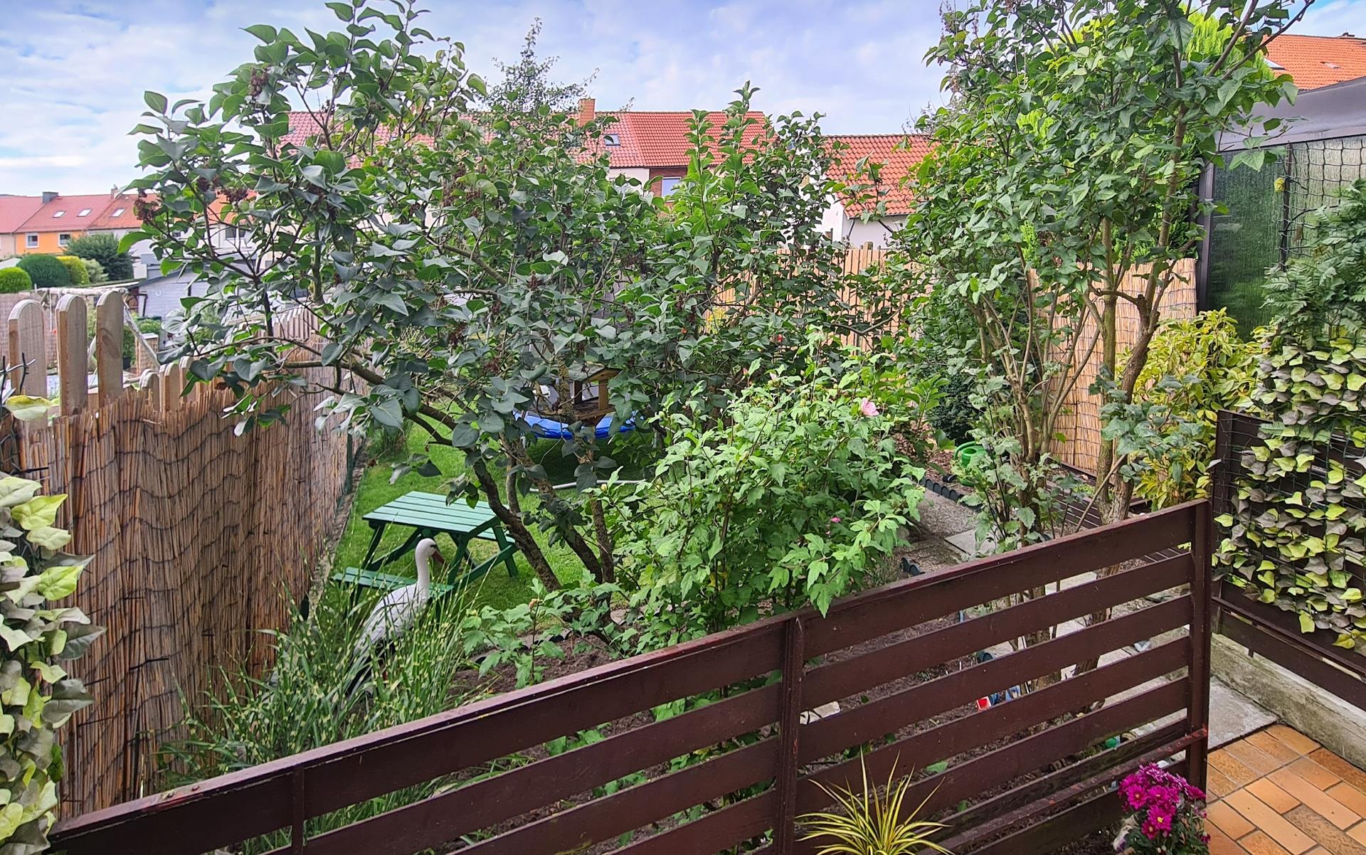 Gepflegtes, massives und 2,5-geschossiges Reihenmittelhaus in zentraler Lage mit Stellplatz, Satteldach und gedämmter Putzfassade (Ostseite). Sie betreten im Erdgeschoss zuerst den kleinen Flur. Zur linken Seite erstreckt sich die Küche, gegenüberliegend das Gäste-WC sowie eine separate Garderobe. Des Weiteren finden Sie im Erdgeschoss ein helles Wohn- und Esszimmer vor. Von hier aus gelangen Sie auf die Terrasse sowie in den gepflegten Garten Über das Treppenhaus erreichen Sie jeweils das Ober- und Dachgeschoss sowie den praktischen Kellerbereich. Im OG befinden sich zwei schöne Schlafzimmer sowie das moderne Hauptbadezimmer mit einer Dusch- und Badewannenkombination. Einen weiteren Schlafraum sowie einen Abstellraum finden Sie im DG vor. Das Haus ist voll unterkellert und bietet somit reichlich Stauraum oder Platz für Ihre Hobbies. Eine Waschküche ist hier ebenfalls vorhanden. Der schöne Garten samt Gartenhäuschen lädt bei gutem Wetter zum Entspannen ein. Gerne stellen wir Ihnen das Haus bei einem persönlichen Besichtigungstermin vor.