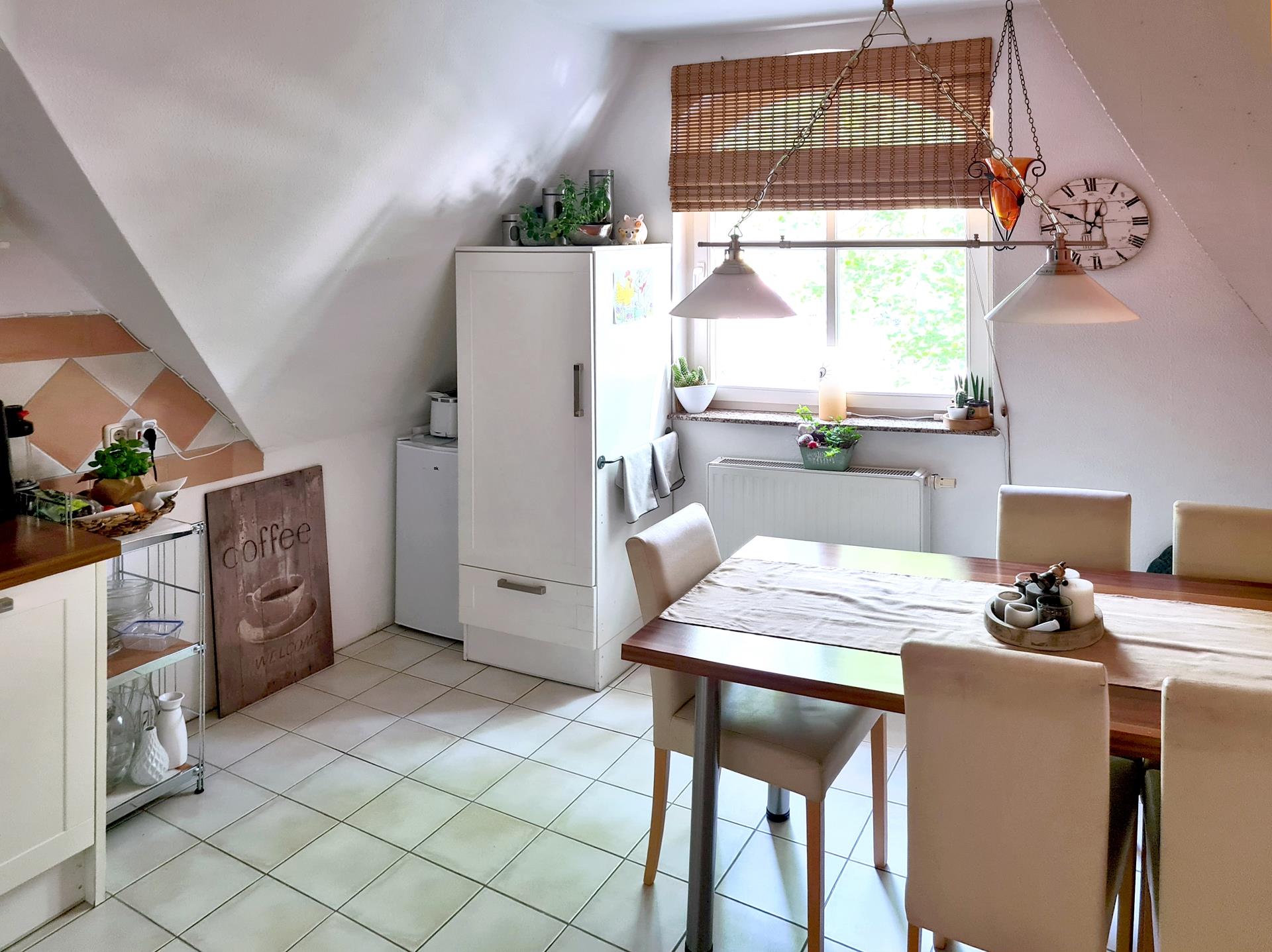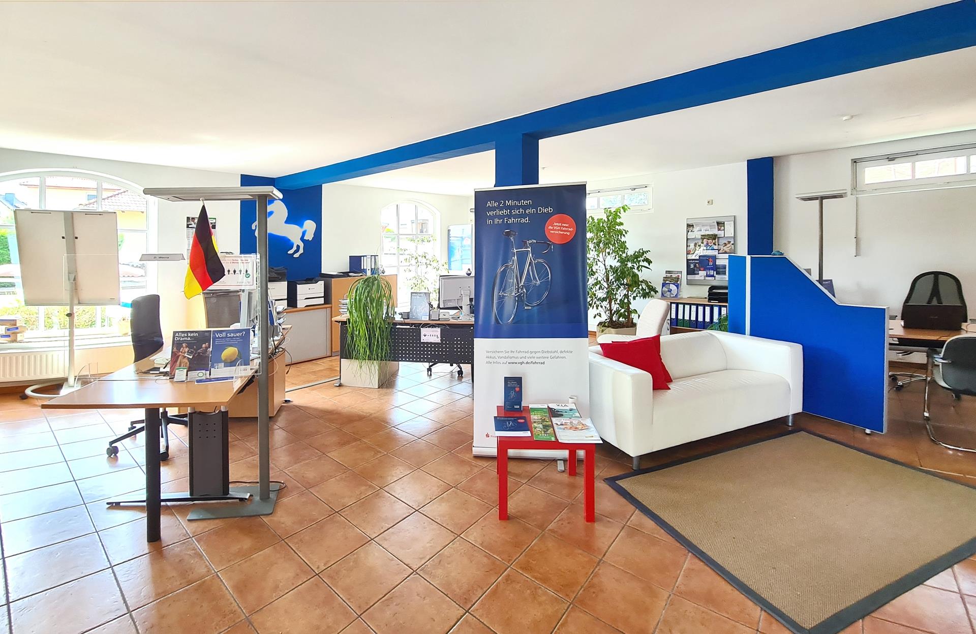 Zentral gelegenes, in massiver Bauweise erstelltes Wohn- und Geschäftshaus mit Satteldach und WDVS, als reine Kapitalanlage geeignet. Im Erdgeschoss (97,12 m², Rohbaumaß 100,12 m²) befindet sich die Gewerbeeinheit (Versicherungsbüro). Diese besteht aus einem Großraumbüro, Personal-WC, kleiner Teeküche und einem Lagerraum. Mieteinnahmen für die Gewerbeeinheit belaufen sich auf 650,00 Euro Kaltmiete. Über einen zweiten separaten Hauseingang gelangen Sie über das Treppenhaus in die Dachgeschosswohnung. Diese teilt sich bei einer Wohnfläche von 91,11 m² wie folgt auf. Über die Diele gelangen Sie in die Küche mit Abstellraum, das helle Wohnzimmer mit Ausgang zur sonnigen Süd-Ostloggia, das Vollbad, Kinder- und Elternschlafzimmer. Mieteinnahmen für die Wohneinheit belaufen sich auf 430,00 Euro Kaltmiete. Die auf dem Grundstück befindliche Terrasse, sowie die Rasenfläche, wird von den Mietern der Dachgeschosswohnung genutzt. Alles in allem eine moderne Kapitalanlage, bei teils langfristigen Mietverträgen (Gewerbeeinheit).